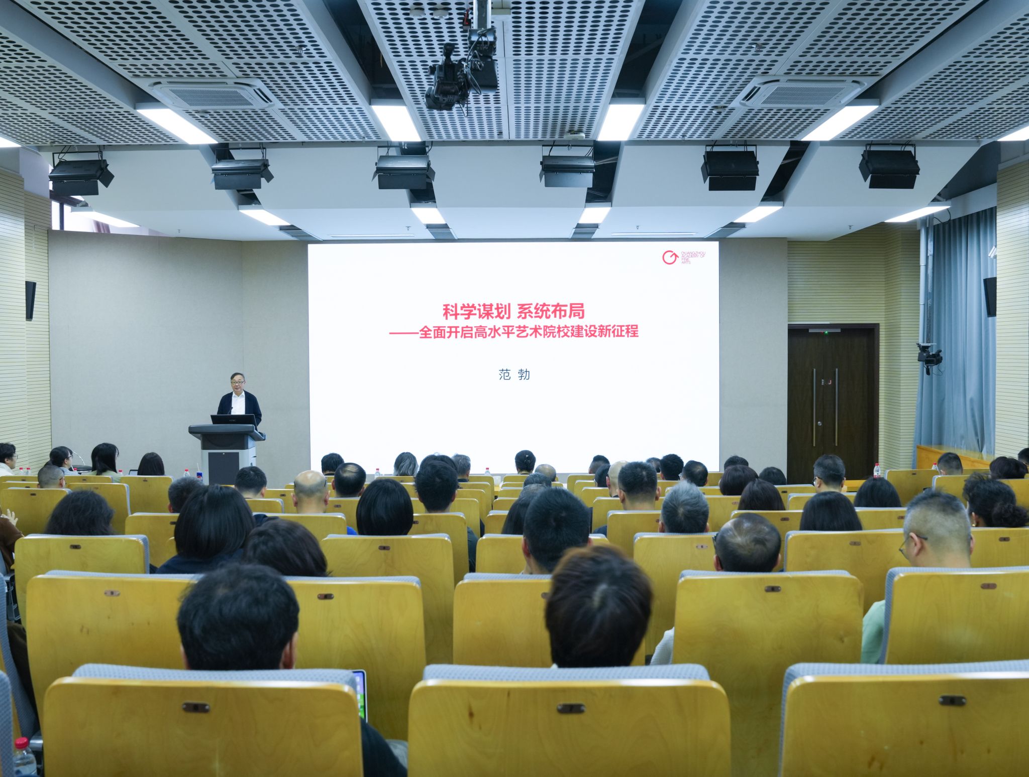 范勃作题为《科学谋划 系统布局——全面开启高水平艺术院校建设新征程》的工作部署。范勃指出,广州美术学院“十五五”规划的编制是主动融入国家发展战略,以“人才培养、科研创新、社会服务”三大基本职能为核心,通过体制机制改革激发内生动力,推动广美高质量发展的重要引擎。他强调,编制广美“十五五”规划要以世界眼光、一流视野,坚持问题导向的正叙法、目标导向的倒叙法、需求导向的对照法和效果导向的对立法相结合,回应时代命题,确立“十五五”发展规划的战略思维:一是坚持思想领航,筑牢规划编制的价值根基与理论自觉;二是聚焦战略目标导向,建构面向未来的高等教育发展坐标体系;三是坚持特色发展路径,激活高质量发展的内生动力机制;四是强化任务牵引机制,构建关键领域创新跃迁的战略支点体系。同时,要迈向治理现代化,构建规划编制与实施协同联动的制度框架:统筹推进“三位一体”协同架构,夯实规划编制的科学性基础;锚定核心领域突破,构建专项规划引领发展的支撑体系;健全责任落实与质量管控机制,全面提升组织力与执行力。